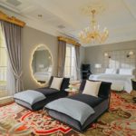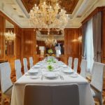 Tutte le aree della suite sono state rinnovate con un gusto contemporaneo ed elegante. I marmi sono stati lucidati e riportati all’originale bellezza così come i preziosi affreschi della cupola che hanno subito un restauro guidato da mani esperte e sono ora illuminati da un nuovo impianto a led che ne esalta ogni dettaglio. Per il restyling, l’interior designer ha selezionato materiali di pregio e pezzi di design Made in Italy creati dalle migliori aziende del settore, preziosi specchi e lampade in vetro di Murano, oggetti d’arte dal gusto contemporaneo come i vasi a forma di birilli.